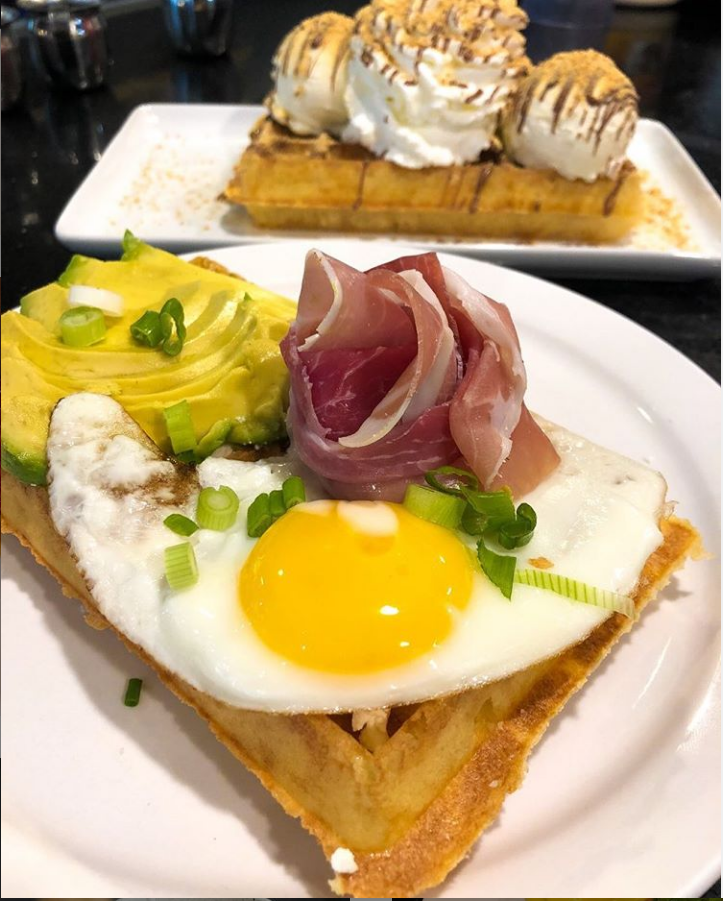 Що спробувати: вафлі з авокадо, прошутто, козячим сиром та яйцем або солодкі з фруктами, морозивом та карамеллю.