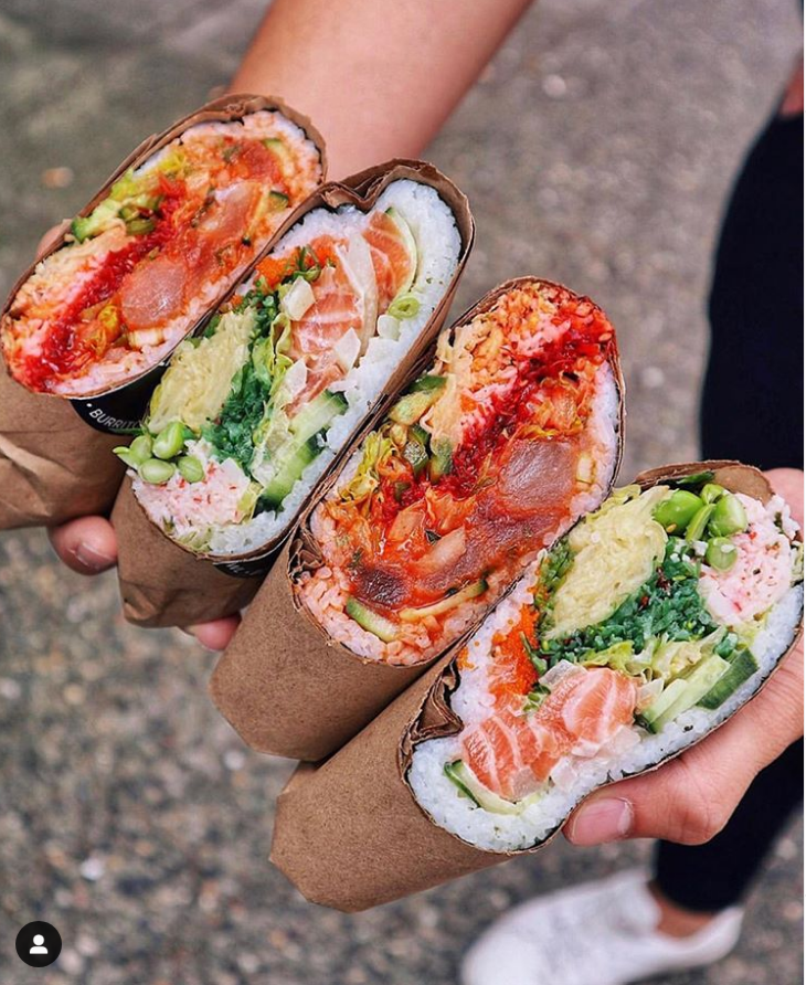 Що спробувати: Hanauma (лосось, водорослі чука, проростки, зелені боби, рис) або у звичайній формі “боулу”, або завернутому в буріто з листків норі.